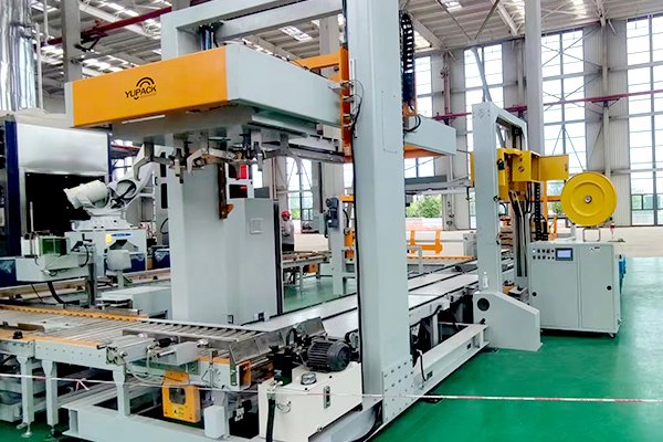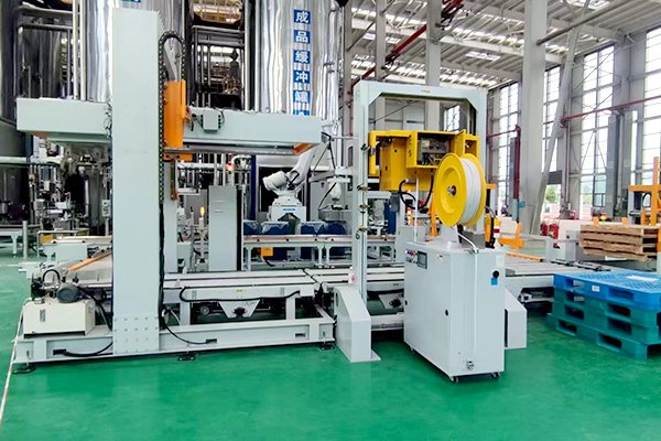 油桶碼垛線是區(qū)別于紙箱與袋碼垛方式的不同碼垛形式,該線體主要由供棧機(jī)、桁架碼垛機(jī)、油桶定位和旋轉(zhuǎn)裝置以及托盤捆扎機(jī)組合而成,油桶定位和旋轉(zhuǎn)裝置可以將桶輸送到指定位置,并按照指定要求,將桶的標(biāo)志面都朝向托盤外側(cè),方便讀取信息。同時(shí)配以桁架式碼垛機(jī),將1-2桶物料抓取平移后,碼到指定托盤上。